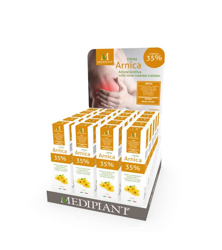 La Crema all’Arnica è un prodotto dalla formula innovativa caratterizzata dall’alta presenza di estratto di Arnica fiori (35%), che esercita un’azione antinfiammatoria naturale.