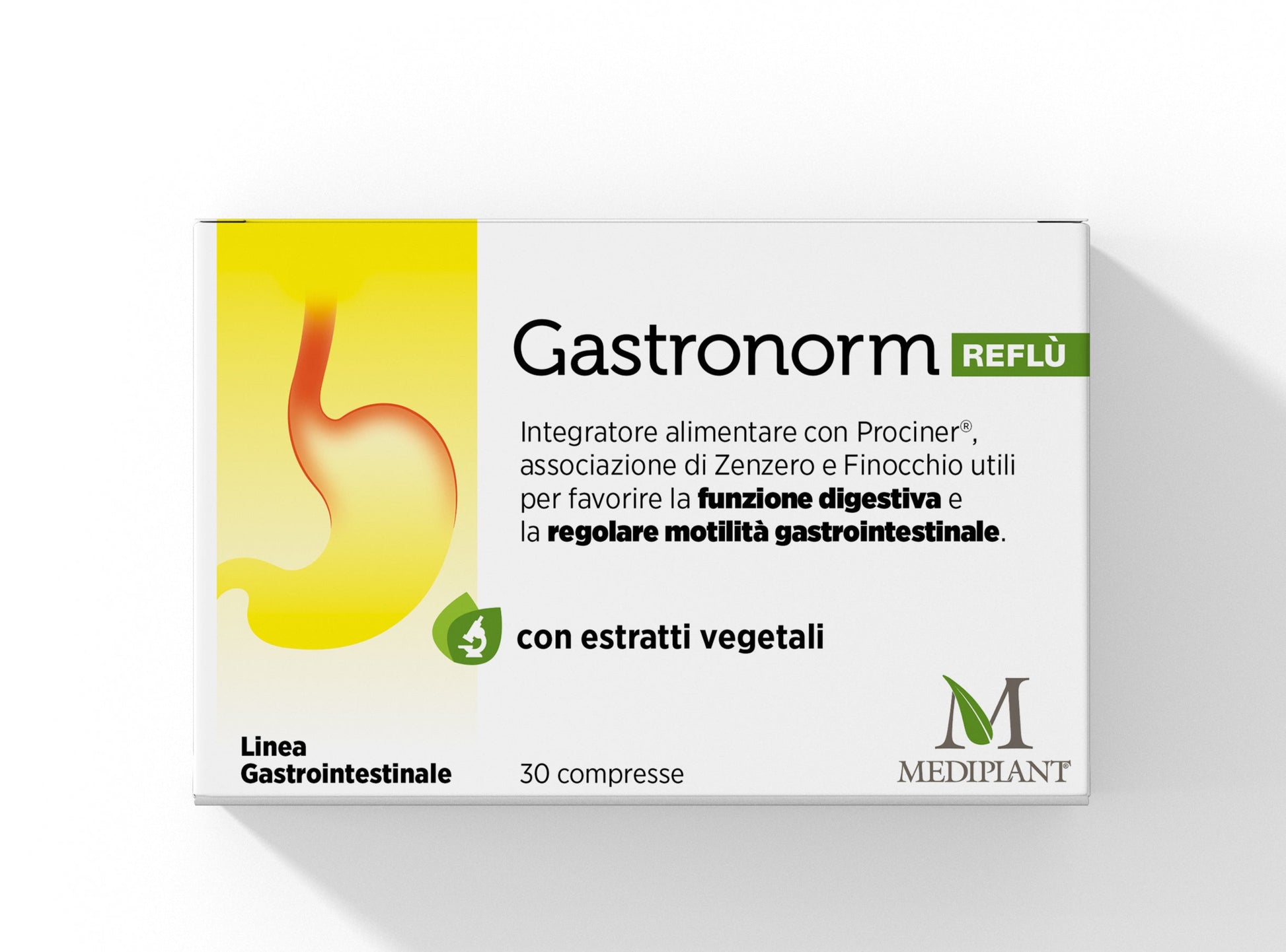 Integratore alimentare con Prociner®, associazione di Zenzero e Finocchio utili per favorire i processi digestivi, la regolare motilità gastrointestinale e l’eliminazione dei gas. Contiene inoltre Basilico sacro e Alginato di sodio.